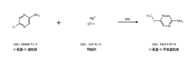 2.通過2-氨基-5-溴吡嗪和甲醇鈉合成2-氨基-5-甲氧基吡嗪,收率約58%;