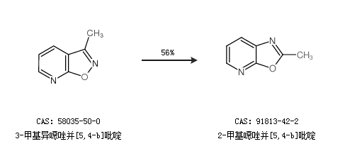 2.通過3-甲基異噁唑并[5,4-b]吡啶合成2-甲基噁唑并[5,4-b]吡啶,收率約56%;