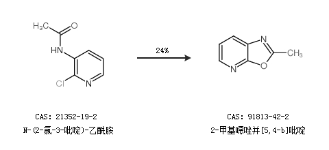 1.通過N-(2-氯-3-吡啶)-乙酰胺合成2-甲基噁唑并[5,4-b]吡啶,收率約24%;