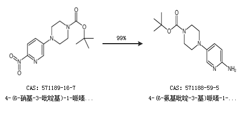 1.通過(guò)4-(6-硝基-3-吡啶基)-1-哌嗪甲酸叔丁酯合成4-(6-氨基吡啶-3-基)哌嗪-1-羧酸叔丁酯,收率約99%;