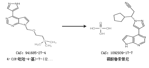 2.通過4-(1H-吡唑-4-基)-7-((2-(三甲基甲硅烷基)乙氧基)-甲基)-7h-吡咯并[2,3-d]嘧啶合成磷酸魯索替尼