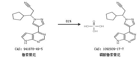1.通過魯索替尼合成磷酸魯索替尼,收率約81%;