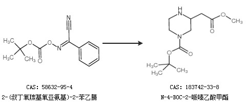 1.通過(guò)2-(叔丁氧羰基氧亞氨基)-2-苯乙腈合成N-4-BOC-2-哌嗪乙酸甲酯