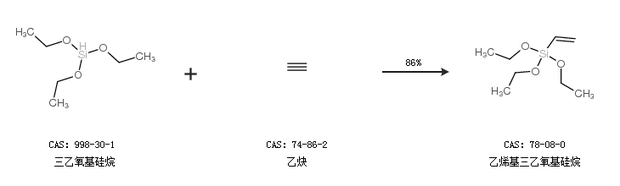 2.通過(guò)三乙氧基硅烷和乙炔合成乙烯基三乙氧基硅烷,收率約86%;