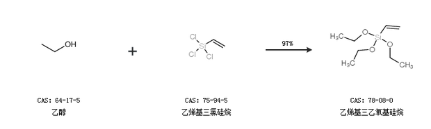 1.通過(guò)乙醇和乙烯基三氯硅烷合成乙烯基三乙氧基硅烷,收率約97%;