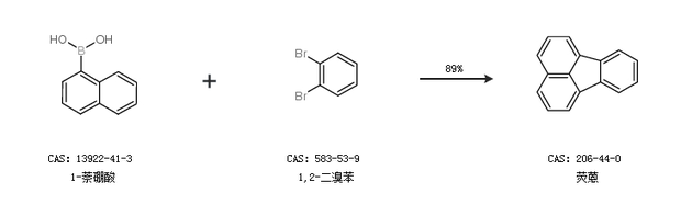 1.通過1-溴代萘和2-溴苯基硼酸合成熒蒽,收率約88%;