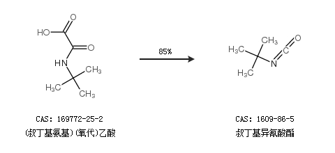 1.通過(叔丁基氨基)(氧代)乙酸合成叔丁基異氰酸酯,收率約85%;