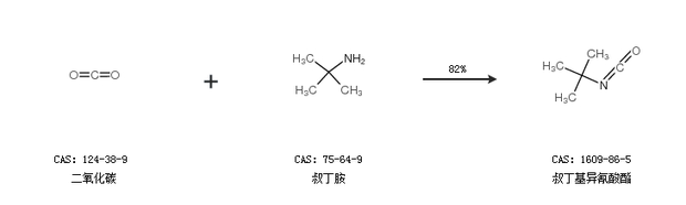 2.通過二氧化碳和叔丁胺合成叔丁基異氰酸酯,收率約82%;