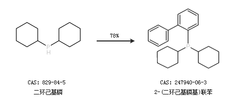 1.通過二環(huán)己基膦合成2-(二環(huán)己基膦基)聯(lián)苯,收率約78%;