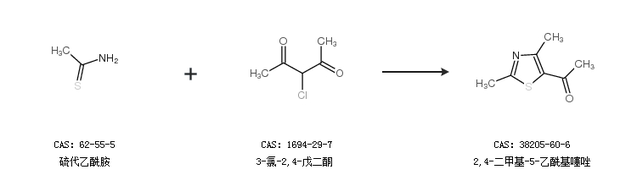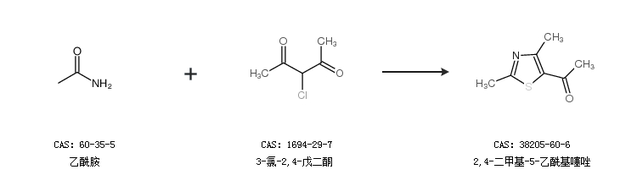 2.通過乙酰胺和3-氯-2,4-戊二酮合成2,4-二甲基-5-乙酰基噻唑