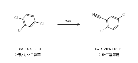 1.通過2-溴-1,4-二氯苯合成2,5-二氯苯腈,收率約74%;