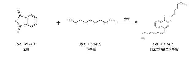 2.通過苯酐和正辛醇合成鄰苯二甲酸二正辛酯,收率約21%;