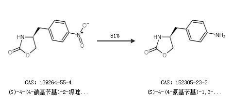 1.通過(S)-4-(4-硝基芐基)-2-噁唑烷酮合成(S)-4-(4-氨基芐基)-1,3-噁唑烷-2-酮,收率約81%;