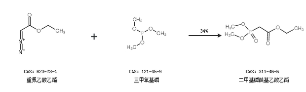 1.通過(guò)重氮乙酸乙酯和三甲氧基磷合成二甲基膦;宜嵋阴,收率約34%;