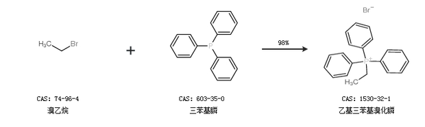 1.通過溴乙烷和三苯基膦合成乙基三苯基溴化膦,收率約98%;