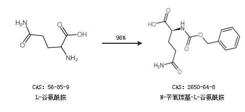 2.通過L-谷氨酰胺合成N-芐氧羰基-L-谷氨酰胺,收率約96%;