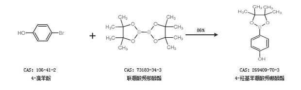 1.通過4-溴苯酚和聯(lián)硼酸頻那醇酯合成4-羥基苯硼酸頻哪醇酯,收率約86%;