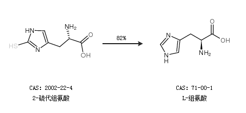 1.通過2-硫代組氨酸合成L-組氨酸,收率約82%;