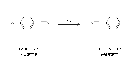 1.通過對氨基苯腈合成4-碘氰基苯,收率約97%;