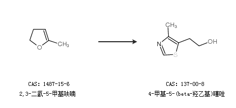 2.通過(guò)2,3-二氫-5-甲基呋喃合成4-甲基-5-(beta-羥乙基)噻唑