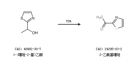 2.通過1-(噻唑-2-基)乙醇合成2-乙?;邕?,收率約70%;
