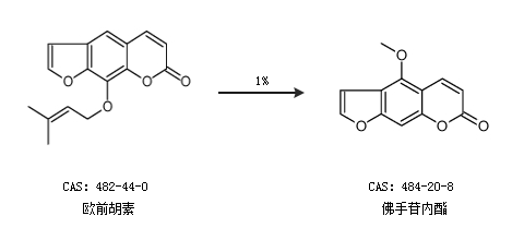 1.通過(guò)歐前胡素合成佛手苷內(nèi)酯,收率約1%;