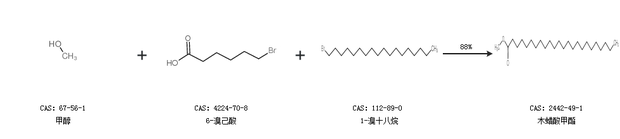 1.通過甲醇、6-溴己酸和1-溴十八烷合成木蠟酸甲酯,收率約88%;