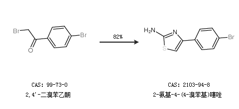 2.通過2,4''-二溴苯乙酮合成2-氨基-4-(4-溴苯基)噻唑,收率約82%;