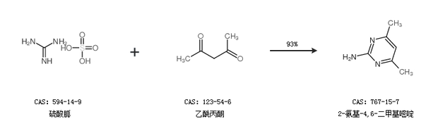 2.通過乙酰丙酮合成2-氨基-4,6-二甲基嘧啶,收率約92%;