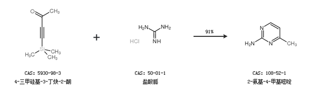 2.通過4-三甲硅基-3-丁炔-2-酮和鹽酸胍合成2-氨基-4-甲基嘧啶,收率約91%;