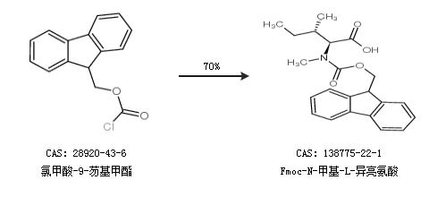1.通過氯甲酸-9-芴基甲酯合成Fmoc-N-甲基-L-異亮氨酸,收率約70%;