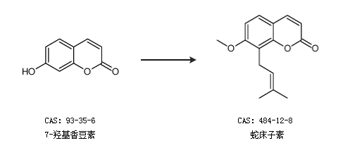 中文別名 歐芹酚甲醚,甲氧基歐芩酚,喔斯腦;王草素;甲氧基歐芹酚;7-甲氧基-8-(3-甲基-2-丁烯基)香豆素;蛇床子提取物;7-甲氧基-8-異戊烯基香豆素;