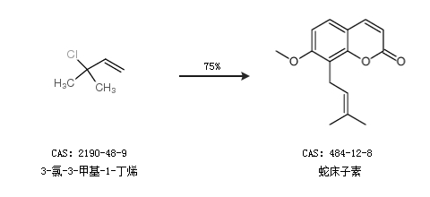 1.通過3-氯-3-甲基-1-丁烯合成蛇床子素,收率約75%;