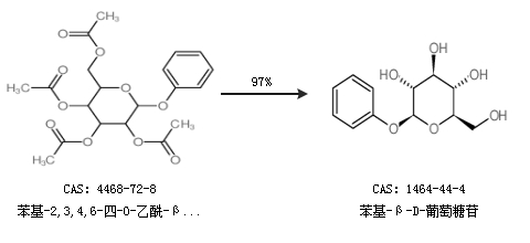 1.通過(guò)苯基-2,3,4,6-四-O-乙酰-β-D-葡萄糖苷合成苯基-β-D-葡萄糖苷,收率約97%;