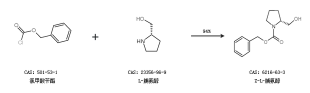 1.通過N-芐氧羰基-L-脯氨酸合成Z-L-脯氨醇,收率約99%;