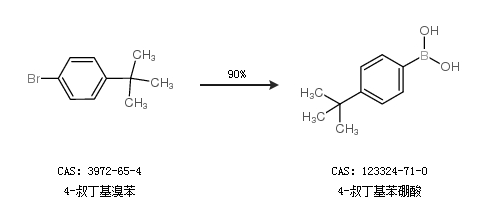 1.通過(guò)4-叔丁基溴苯合成4-叔丁基苯硼酸,收率約90%;