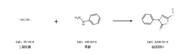1.通過(guò)二硫化碳和苯肼合成鉍試劑II