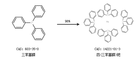 1.通過(guò)三苯基膦合成四(三苯基膦)鈀,收率約98%;