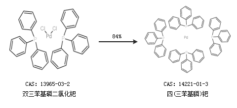 2.通過(guò)雙三苯基磷二氯化鈀合成四(三苯基膦)鈀,收率約84%;