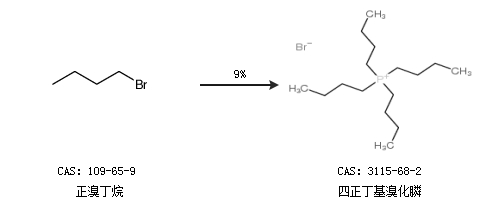 1.通過正溴丁烷合成四正丁基溴化膦,收率約9%;