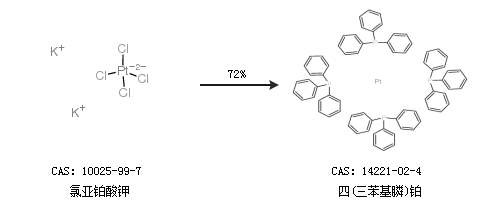 2.通過(guò)氯亞鉑酸鉀合成四(三苯基膦)鉑,收率約72%;