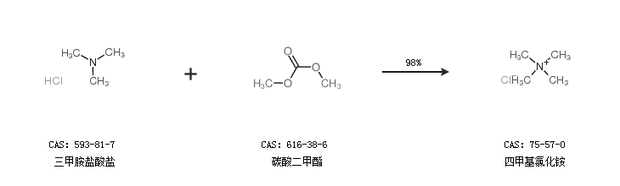 2.通過三甲胺鹽酸鹽和碳酸二甲酯合成四甲基氯化銨,收率約98%;
