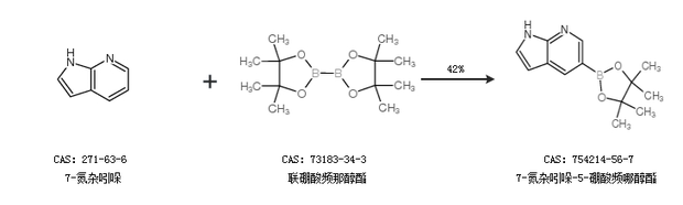 2.通過7-氮雜吲哚和聯(lián)硼酸頻那醇酯合成7-氮雜吲哚-5-硼酸頻哪醇酯,收率約42%;
