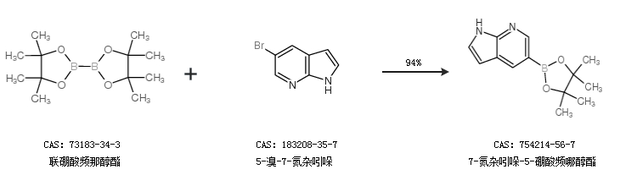 1.通過聯(lián)硼酸頻那醇酯和5-溴-7-氮雜吲哚合成7-氮雜吲哚-5-硼酸頻哪醇酯,收率約94%;