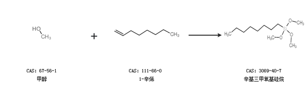 1.通過(guò)甲醇和1-辛烯合成辛基三甲氧基硅烷