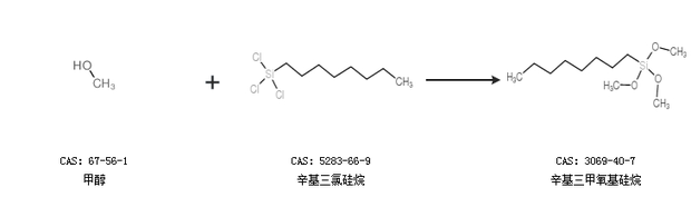 2.通過(guò)甲醇和辛基三氯硅烷合成辛基三甲氧基硅烷