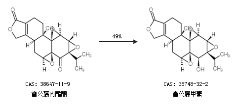 1.通過雷公藤內(nèi)酯酮合成雷公藤甲素,收率約31%;