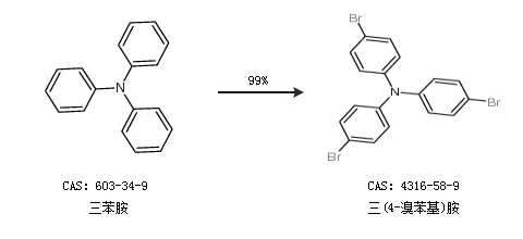 1.通過三苯胺合成三(4-溴苯基)胺,收率約99%;