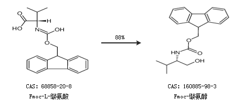 1.通過Fmoc-L-纈氨酸合成Fmoc-纈氨醇,收率約88%;