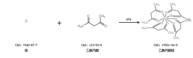 1.通過鋯和乙酰丙酮合成乙酰丙酮鋯,收率約87%;
